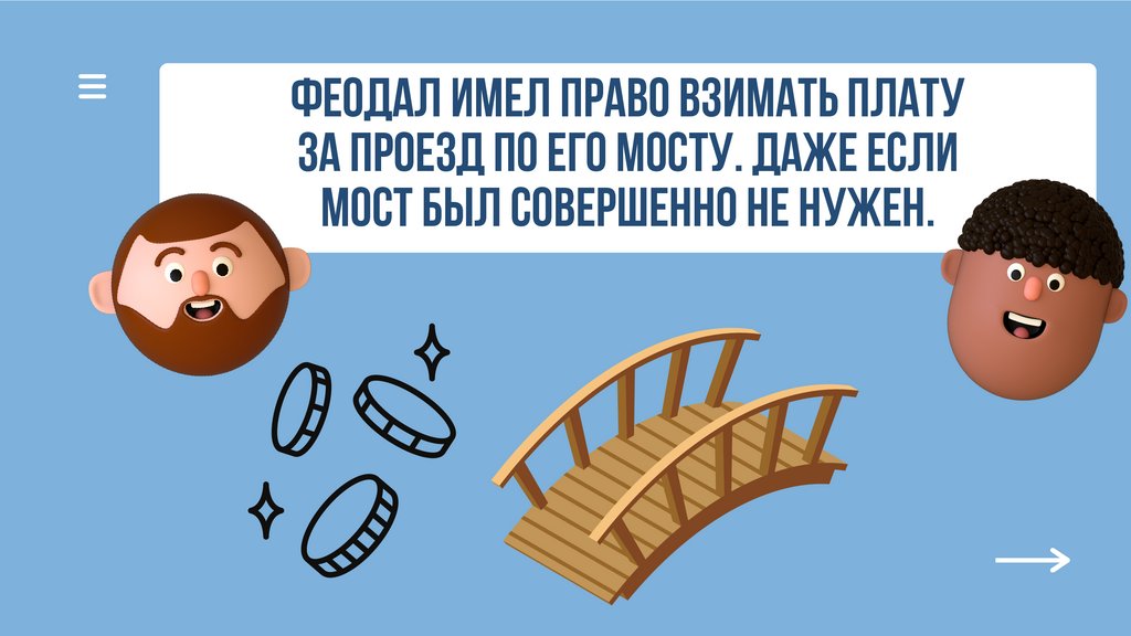 Феодал имел право взимать платуза проезд по его мосту. Даже если