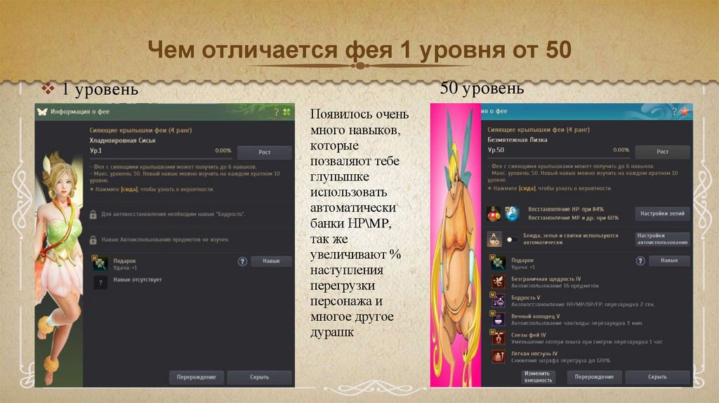 Чем отличается фея 1 уровня от 5050 уровень