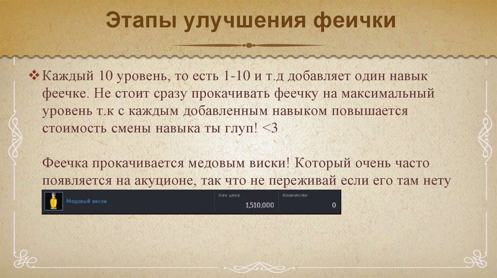 феечке. Не стоит сразу прокачивать феечку на максимальный