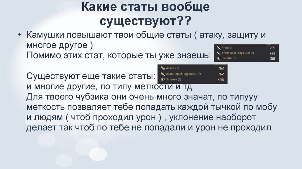 • Камушки повышают твои общие статы ( атаку, защиту и
