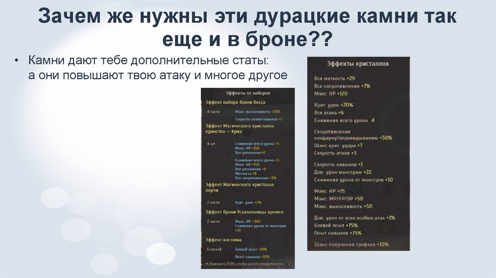Зачем же нужны эти дурацкие камни такеще и в броне??