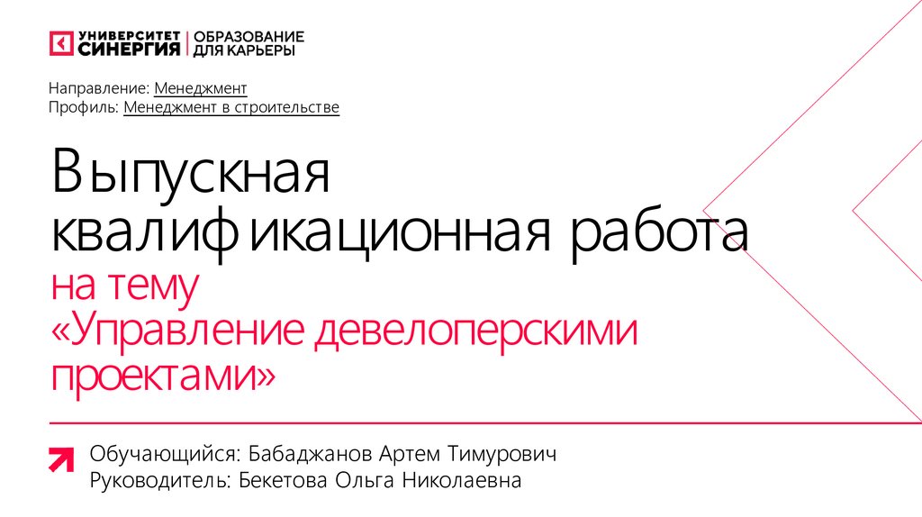 Направление: МенеджментПрофиль: Менеджмент в строительстве