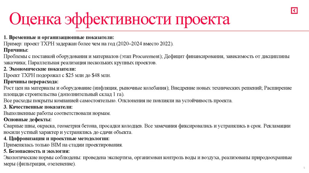 Пример: проект ТХРН задержан более чем на год (2020–2024 вместо 2022).