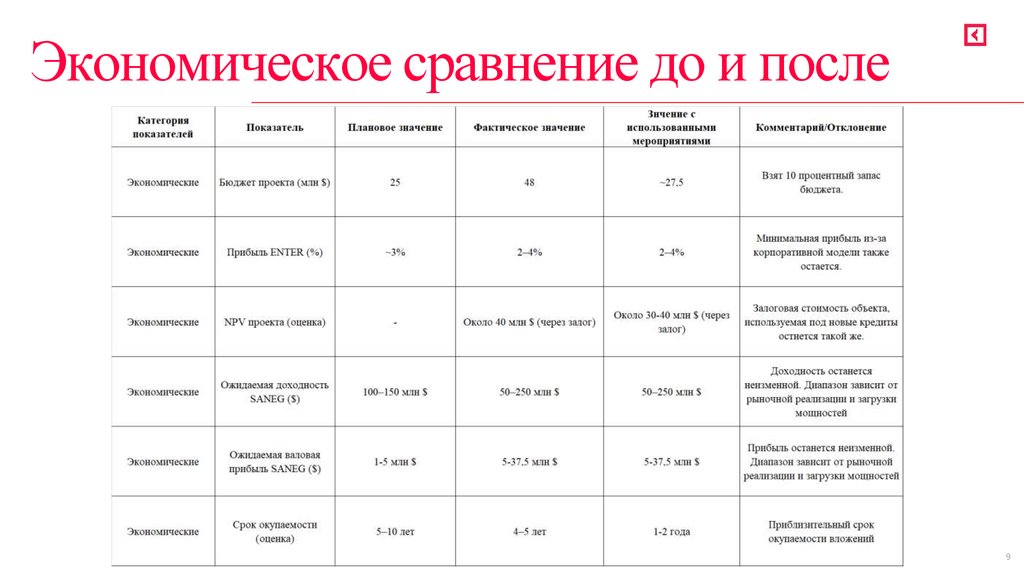 бюджета в пределах 10% вместо 90% (как в случае с проектом ТХРН), сокращению сроков окупаемости с 4–5 лет до 1–2 лет, а