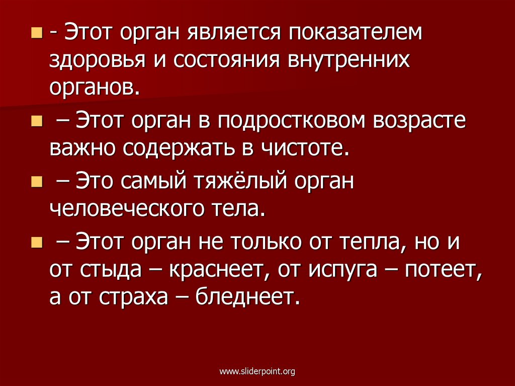 - Этот орган является показателемздоровья и состояния внутренних