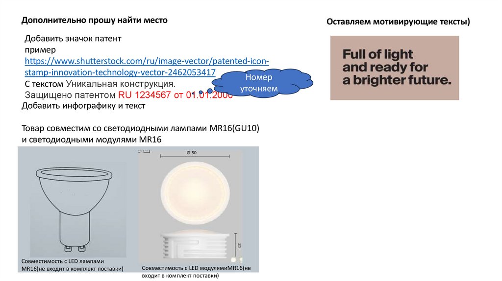 Рекомендуемая мощность LED ламп: не более 9W (в