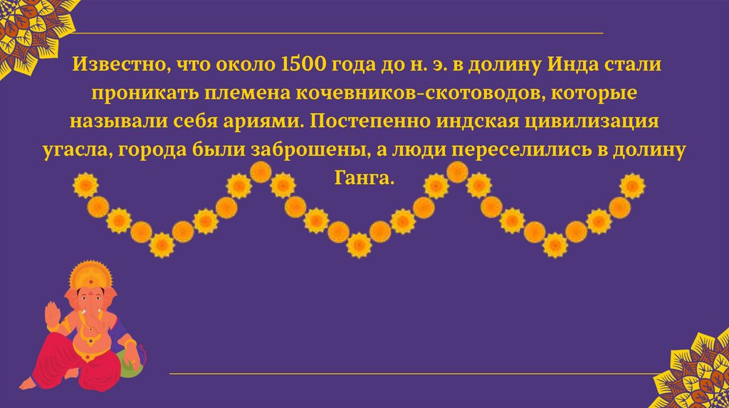 Известно, что около 1500 года до н. э. в долину Инда сталипроникать племена кочевников-скотоводов, которые