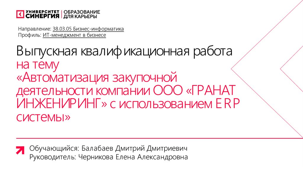 Направление: 38.03.05 Бизнес-информатикаПрофиль: ИТ-менеджмент в бизнесе