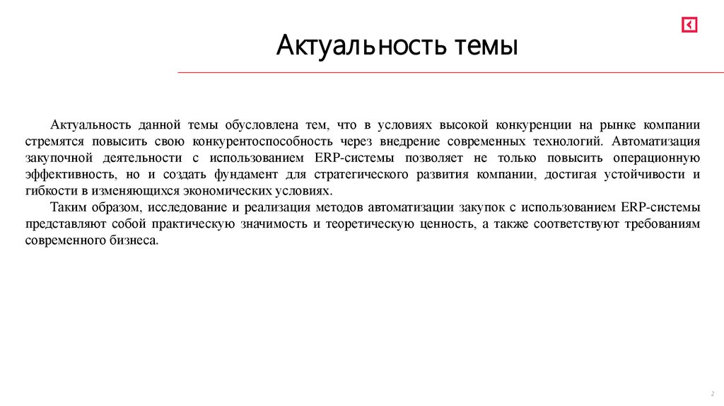 Актуальность темыАктуальность данной темы обусловлена тем, что в условиях высокой конкуренции на рынке компании