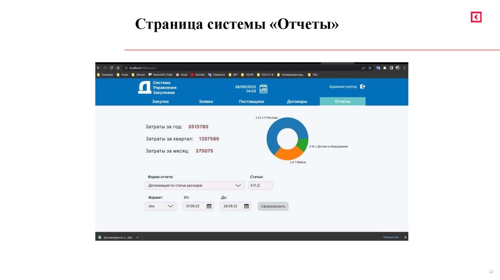 Страница системы «Отчеты»22