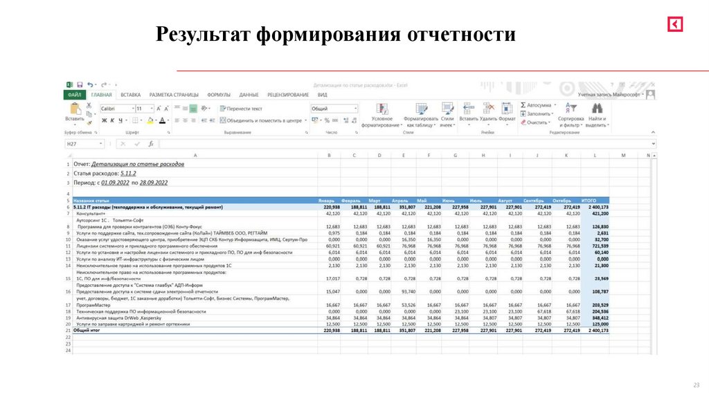 Результат формирования отчетности23