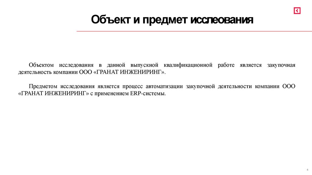 Объект и предмет исслеованияОбъектом исследования в данной выпускной квалификационной работе является закупочная