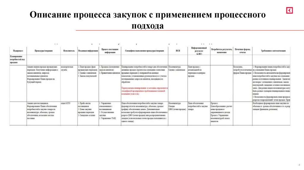 Описание процесса закупок с применением процессногоподхода