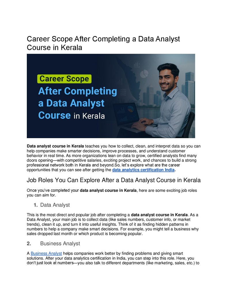 Career Scope After Completing a Data AnalystCourse in Kerala
