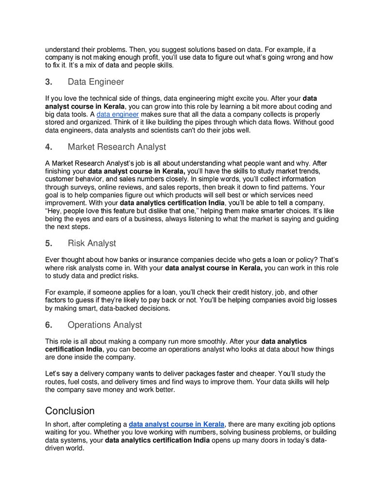 finishing your data analyst course in Kerala, you’ll have the skills to study market trends,