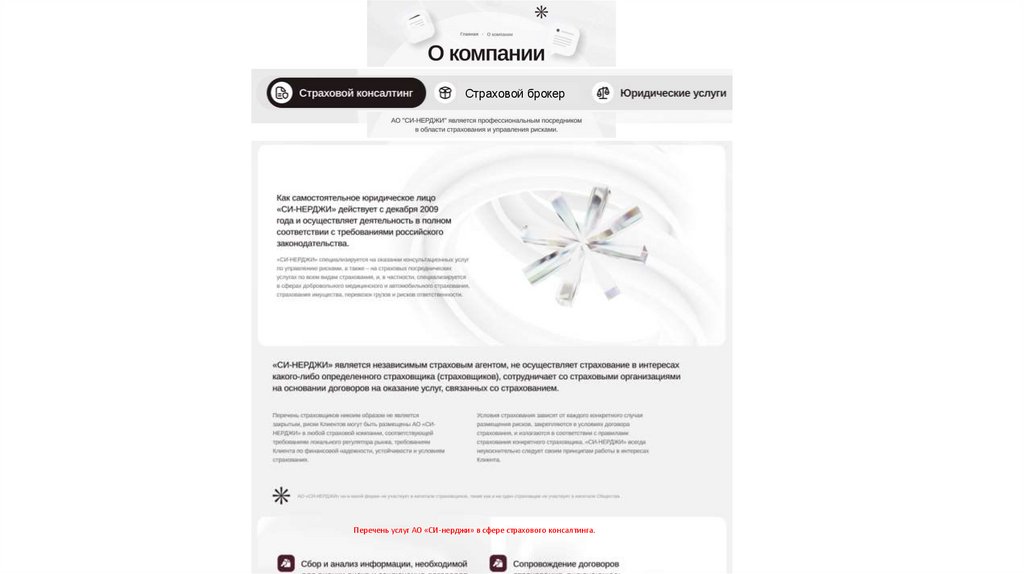 Страховой брокерПеречень услуг АО «СИ-нерджи» в сфере страхового консалтинга.