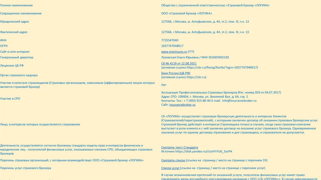 Полное наименованиеОбщество с ограниченной ответственностью «Страховой брокер «ЛОГИКА»