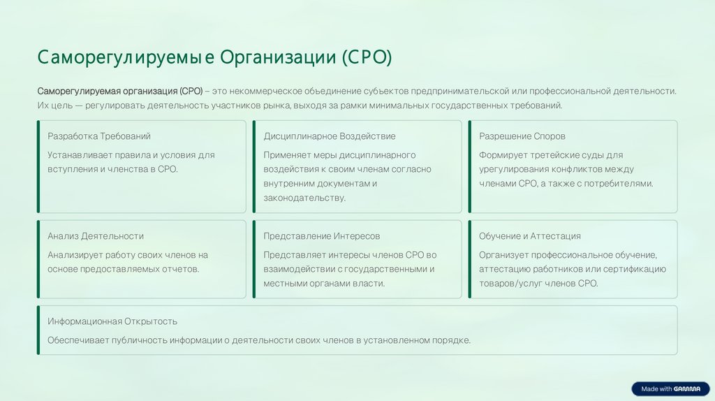 Саморегул ируемы е Организации (СРО)Саморегулируемая организация (СРО) – это некоммерческое объединение субъектов предпринимательской или профессиональной деятельности.
