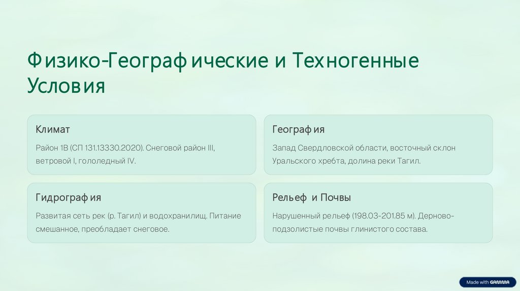 Ф изико-Географ ические и Тех ногенныеУслов ия