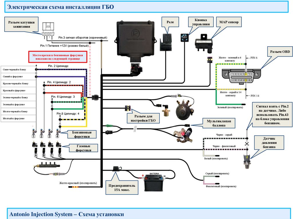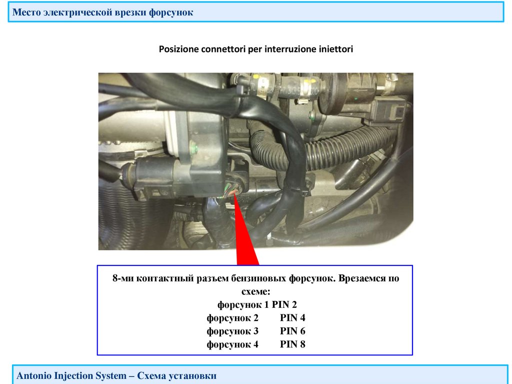 8-ми контактный разъем бензиновых форсунок. Врезаемся по
