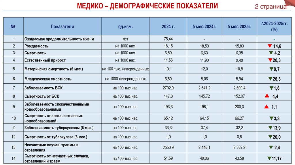 МЕДИКО – ДЕМОГРАФИЧЕСКИЕ ПОКАЗАТЕЛИ№
