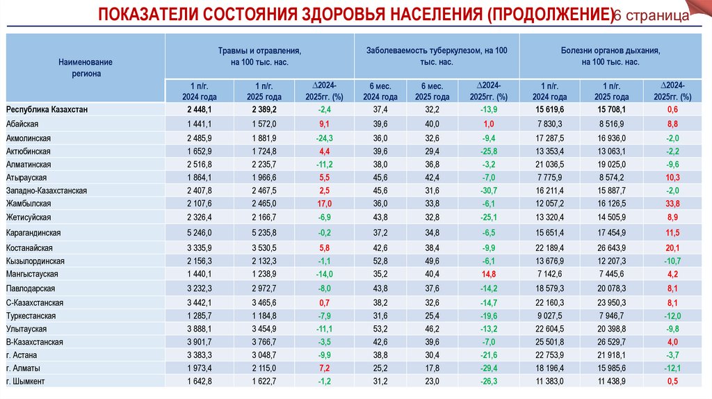 Заболеваемость туберкулезом (6 мес.)