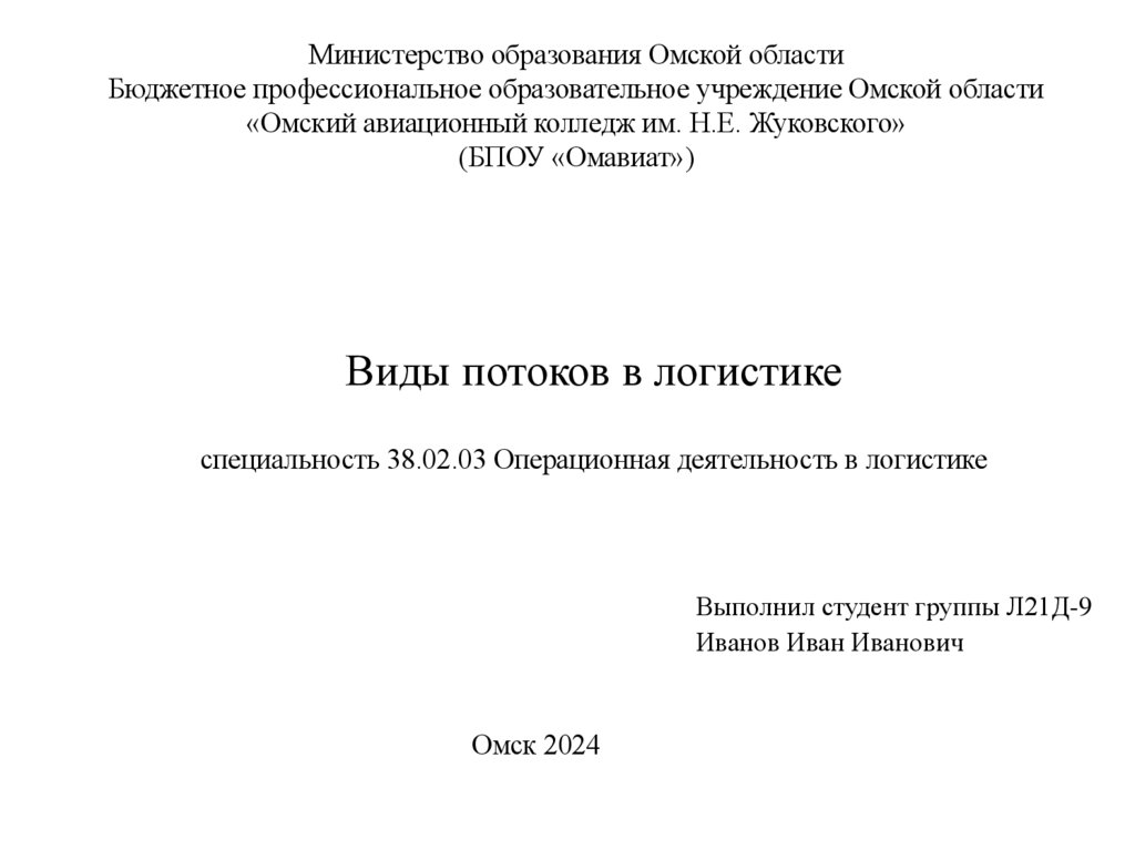 1. Виды потоков в логистике специальность 38.02.03 Операционная деятельность в логистике