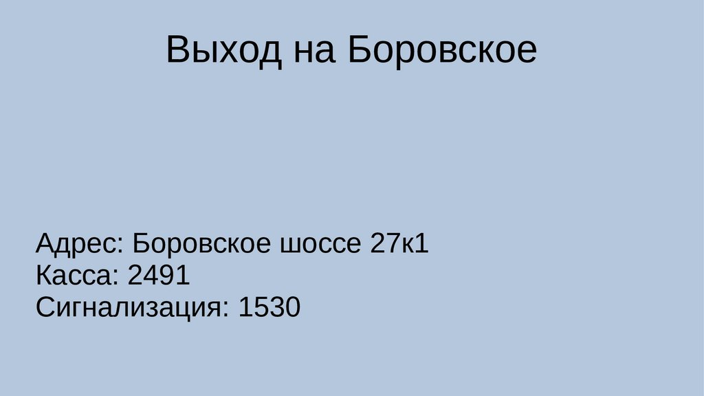Выход на БоровскоеАдрес: Боровское шоссе 27к1