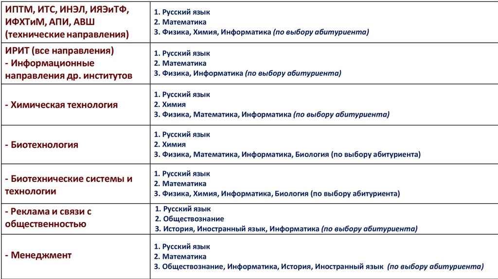 3. Физика, Математика, Информатика, Биология (по выбору абитуриента)