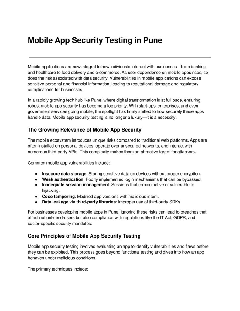 Mobile App Security Testing in PuneMobile applications are now integral to how individuals interact with businesses—from banking