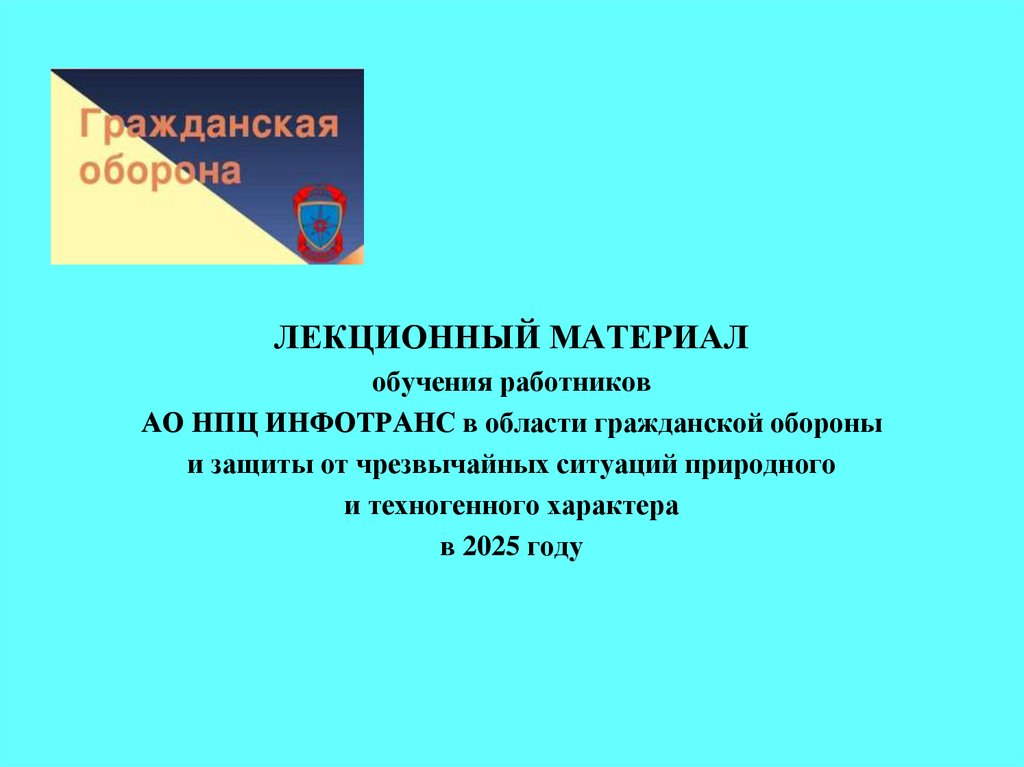 Лекционный материал обучения работников АО НПЦ ИНФОТРАНС в области гражданской обороны и защиты от чрезвычайных ситуаций