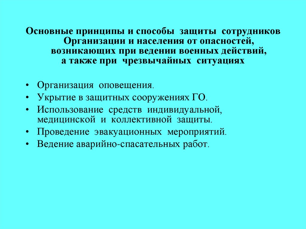 Основные принципы и способы защиты сотрудниковОрганизации и населения от опасностей,