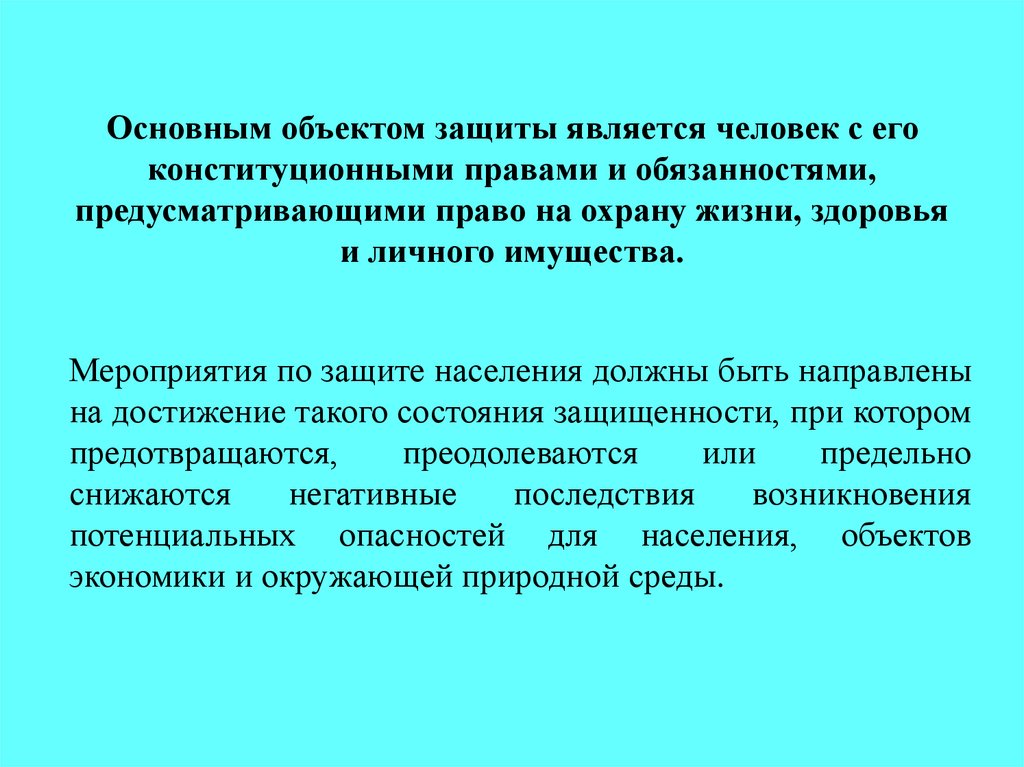 Основным объектом защиты является человек с егоконституционными правами и обязанностями,