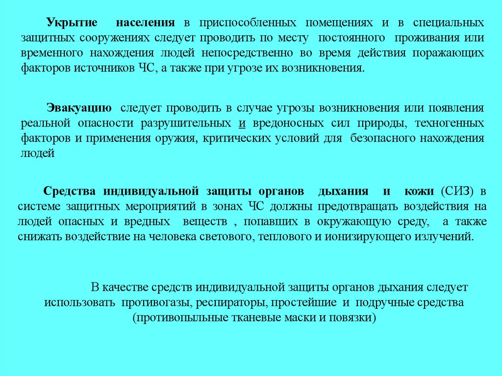 системе защитных мероприятий в зонах ЧС должны предотвращать воздействия на