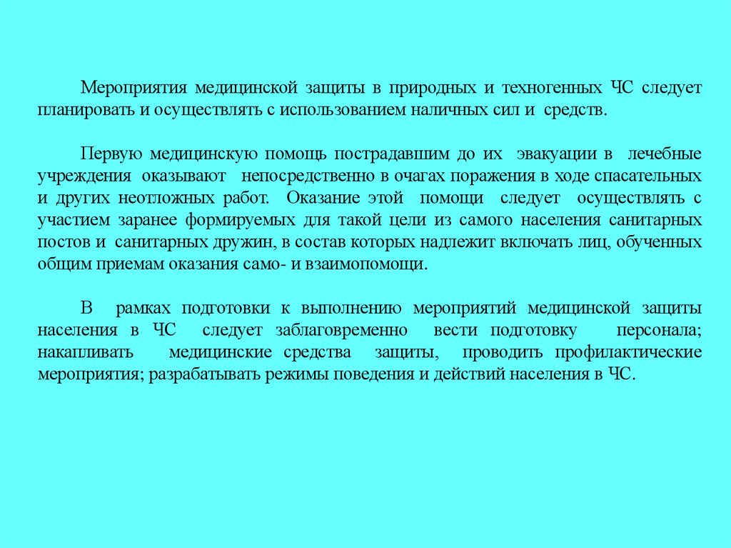 Мероприятия медицинской защиты населения при ЧС следует проводить с