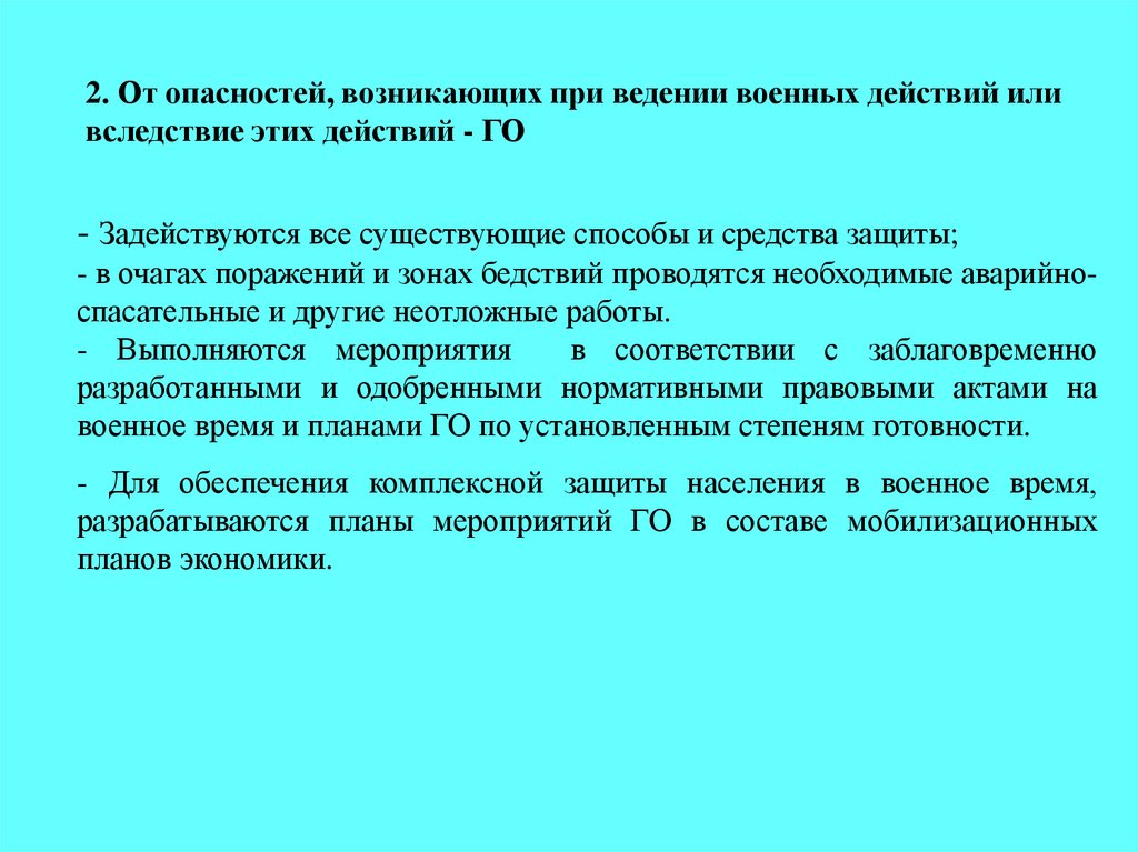 2. От опасностей, возникающих при ведении военных действий иливследствие этих действий - ГО