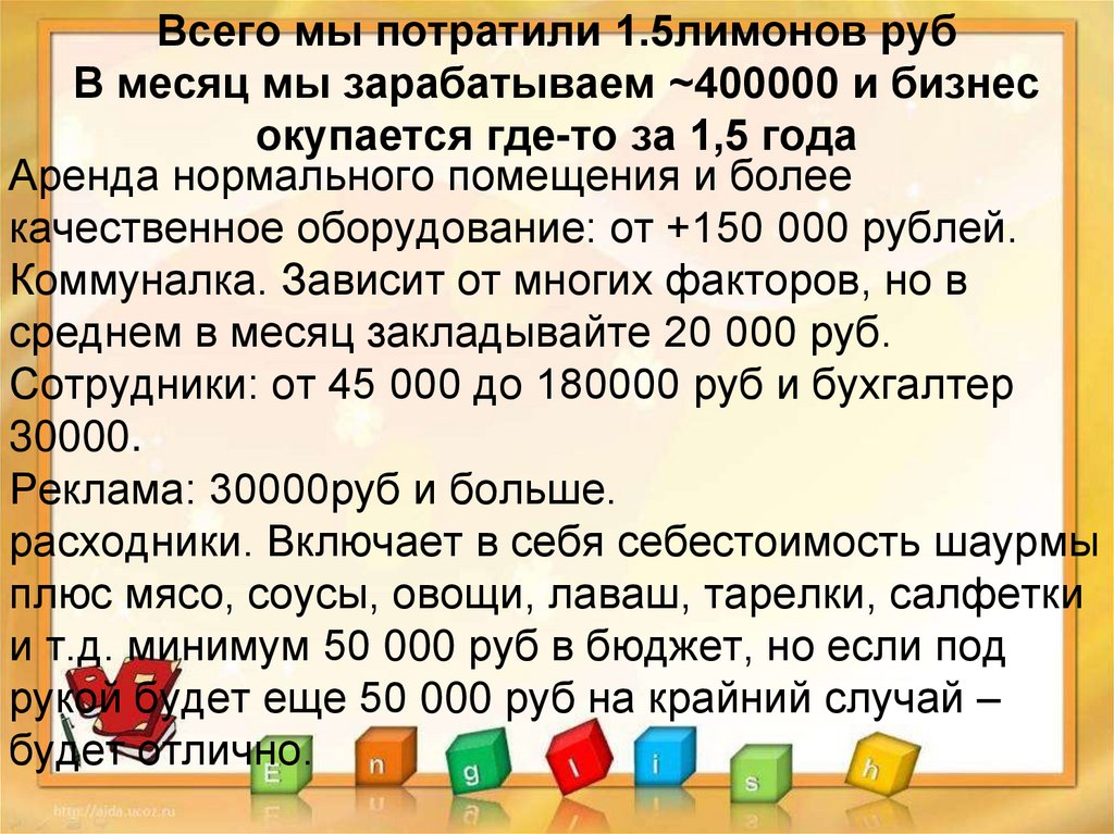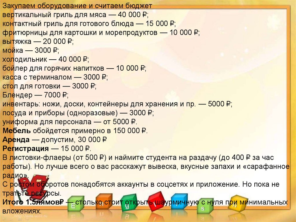 Итого 1.5лямов₽ — столько стоит открыть шаурмичную с нуля при минимальных