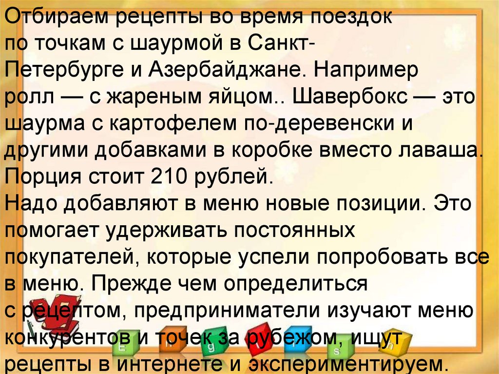 Отбираем рецепты во время поездокпо точкам с шаурмой в СанктПетербурге и Азербайджане. Например