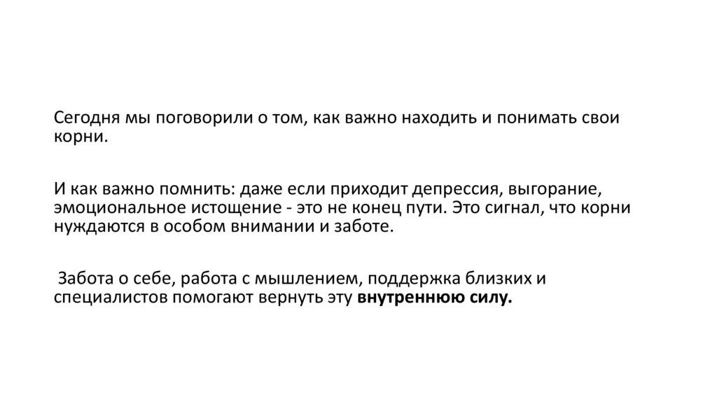 Сегодня мы поговорили о том, как важно находить и понимать своикорни.