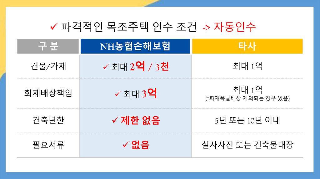 파격적인 목조주택 인수 조건 -> 자동인수구분