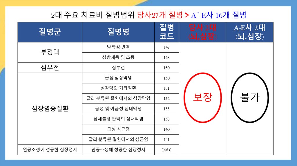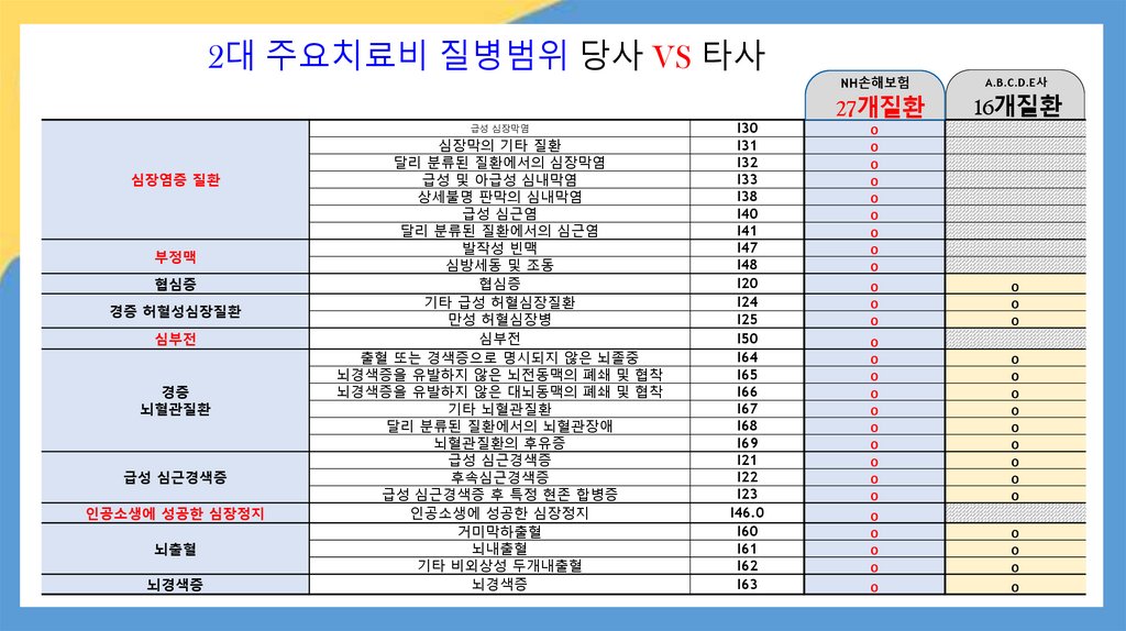 2대 주요 치료비 질병범위 당사27개 질병 > A~E사 16개 질병질병군