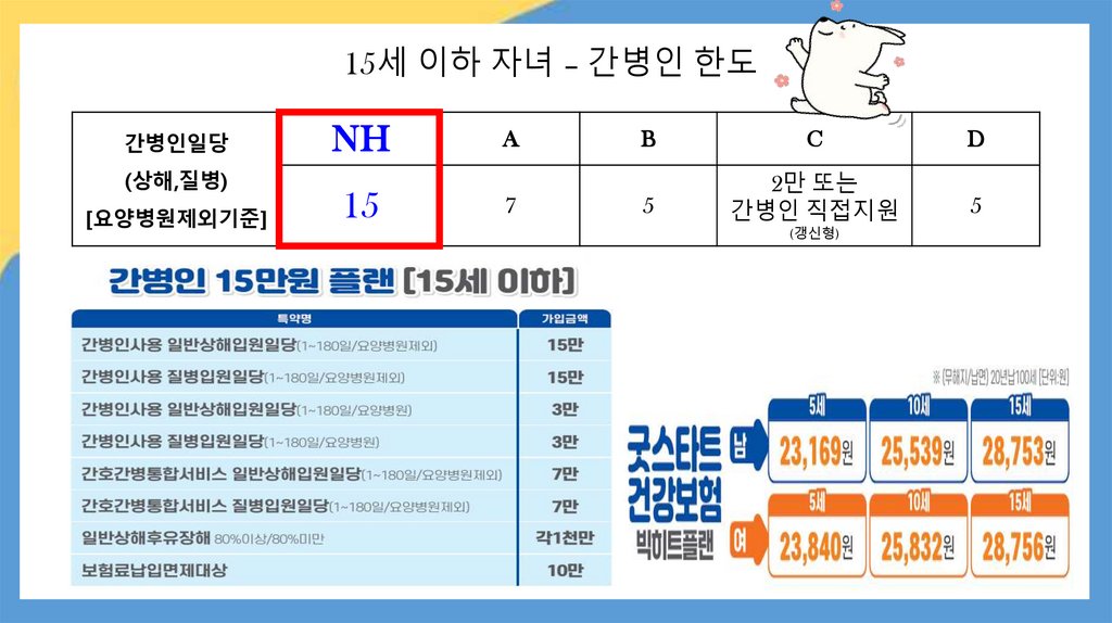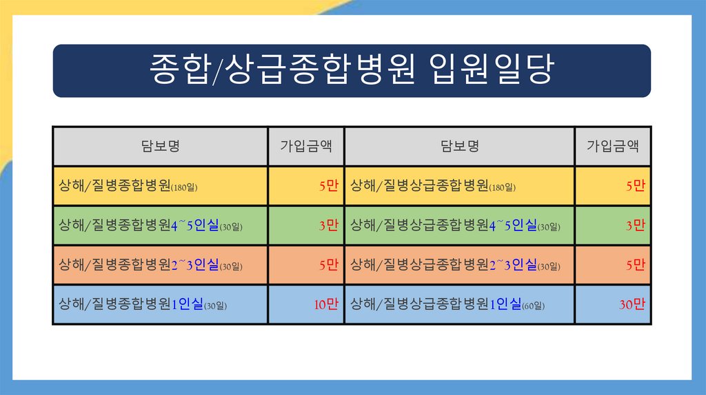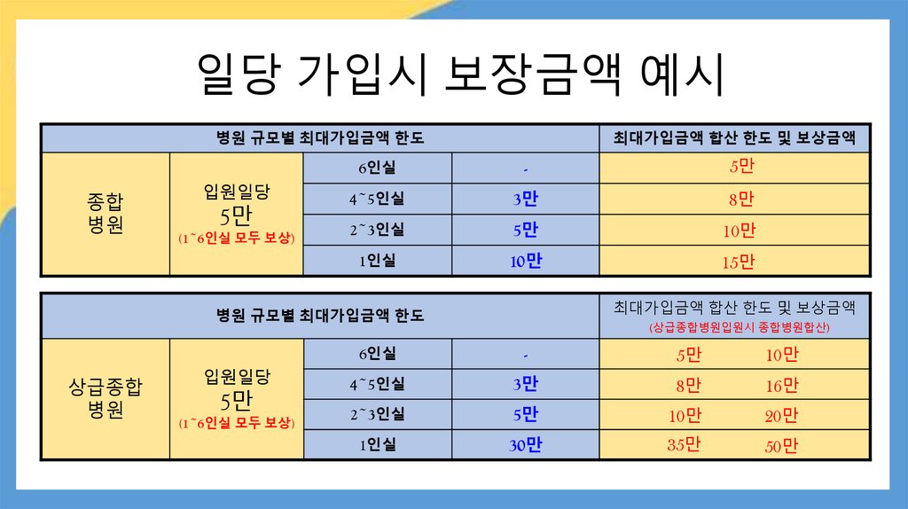 일당 가입시 보장금액 예시병원 규모별 최대가입금액 한도