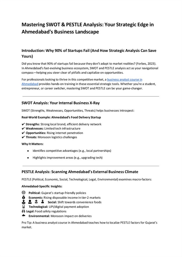 In Ahmedabad’s fast-evolving business ecosystem, SWOT and PESTLE analysis act as your navigational