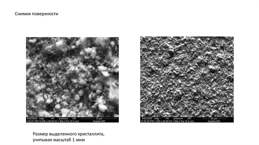 Снимки поверхностиРазмер выделенного кристаллита,
