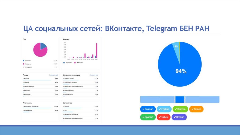 ЦА социальных сетей: ВКонтакте, Telegram БЕН РАНСубъект