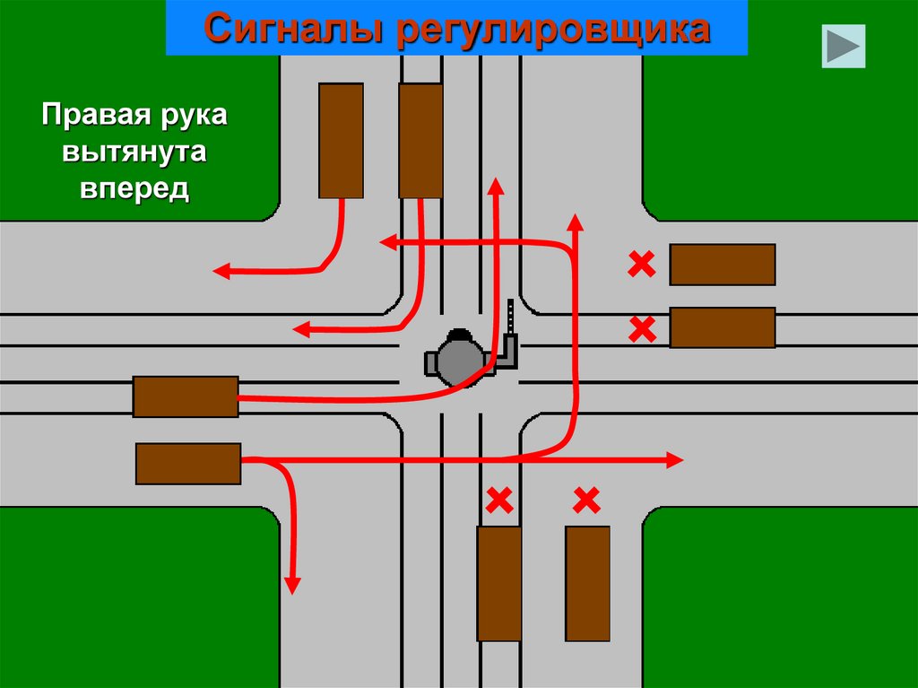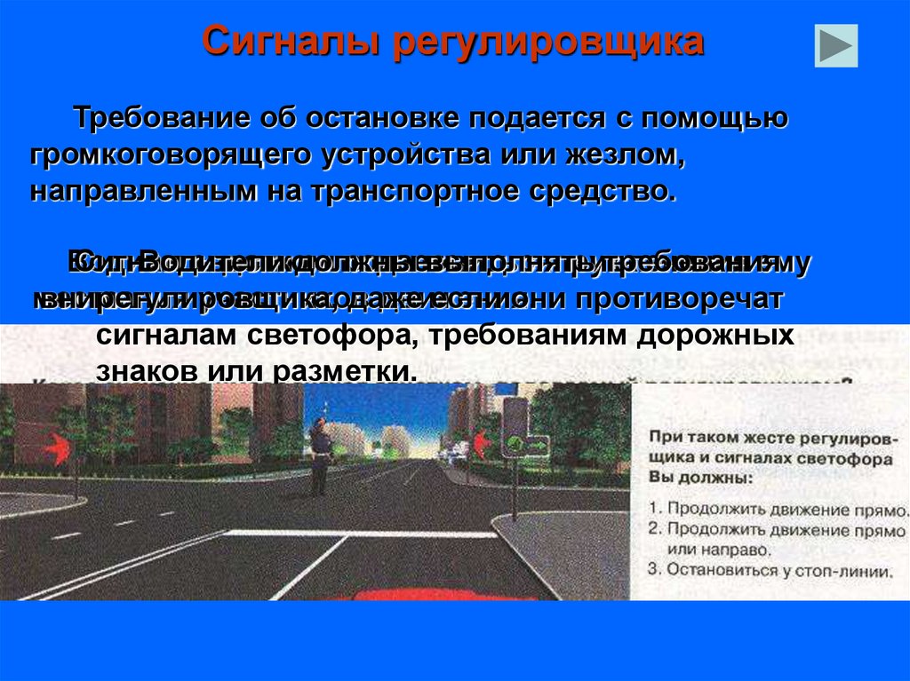 Сигналы регулировщикаТребование об остановке подается с помощью