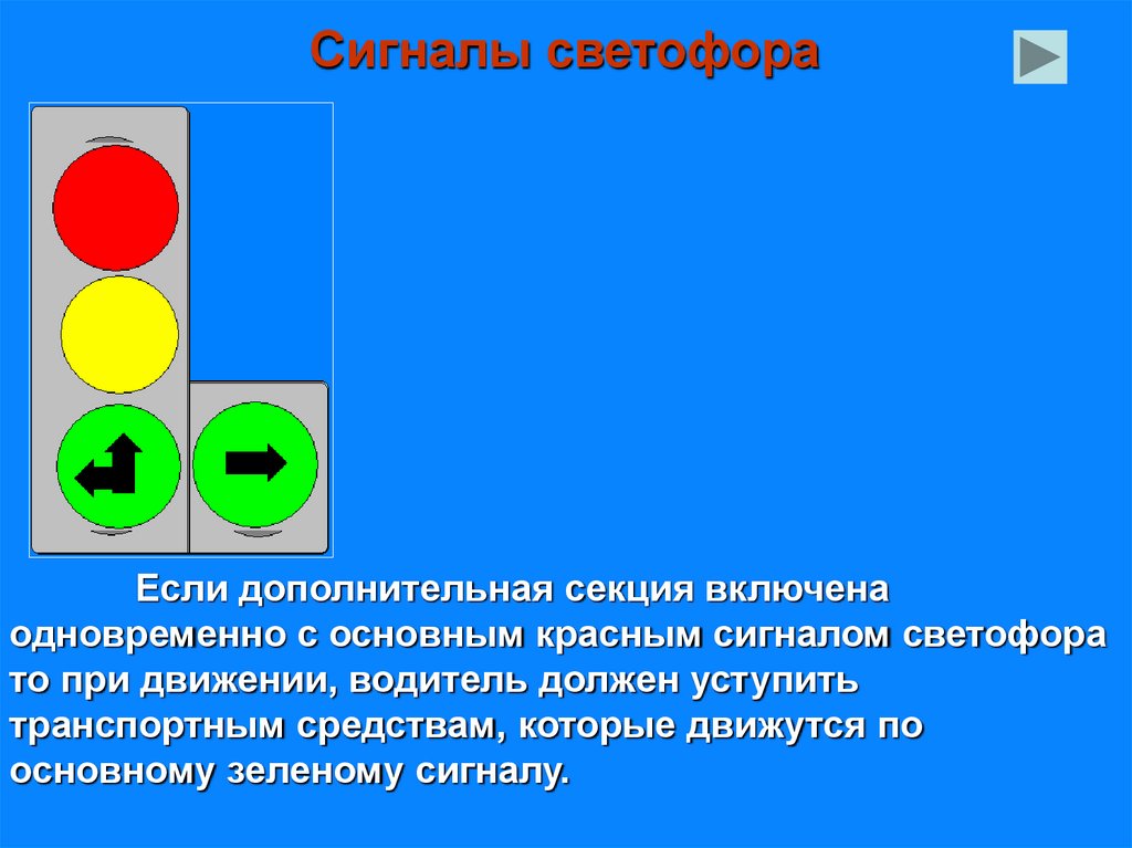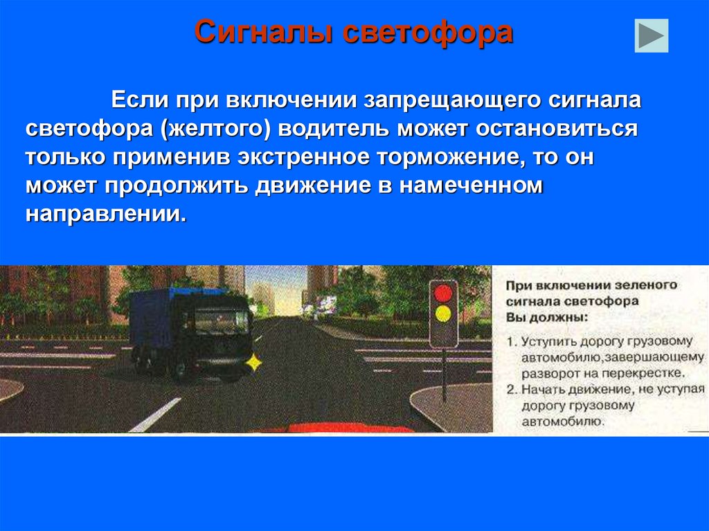 Сигналы светофораЕсли при включении запрещающего сигнала