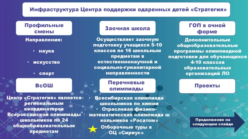 Инфраструктура Центра поддержки одаренных детей «Стратегия»Профильные