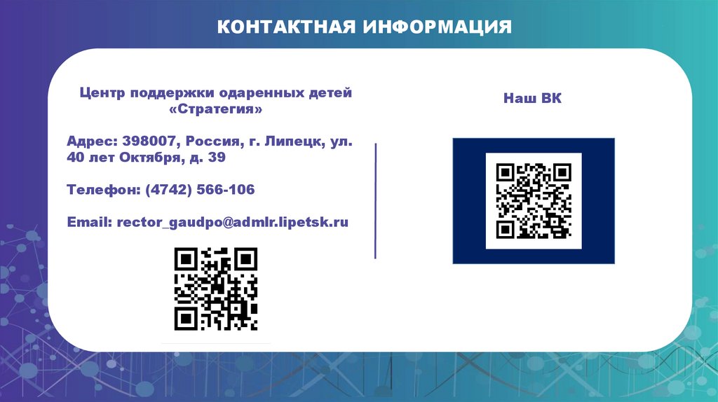 КОНТАКТНАЯ ИНФОРМАЦИЯЦентр поддержки одаренных детей
