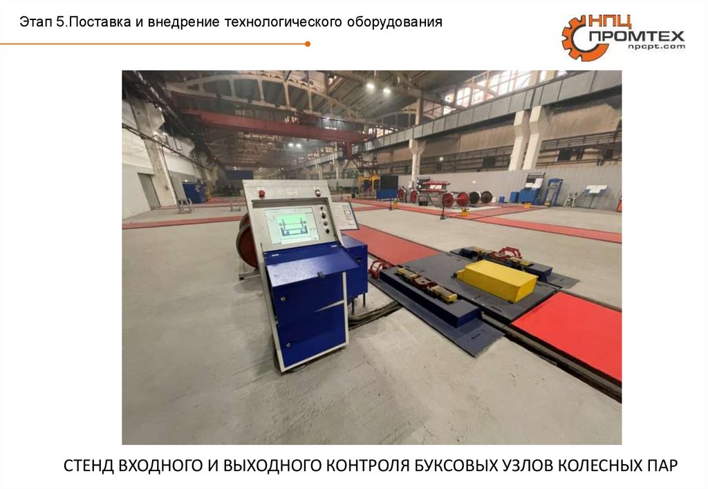 Этап 5.Поставка и внедрение технологического оборудованияСТЕНД ВХОДНОГО И ВЫХОДНОГО КОНТРОЛЯ БУКСОВЫХ УЗЛОВ КОЛЕСНЫХ ПАР